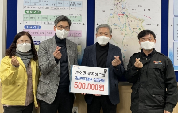 | 농소면 봉곡하교회(목사 권혁진)는 지난 21일 연말을 맞아 소외되고 어려운 이웃을 위해 김천복지재단에 성금 50만원을 전달했다.