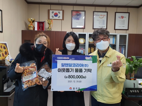 전달식에 참석한 ㈜농업회사법인 알앤알코리아 엄소현 이사는 “곧 새해를 맞는데 경제적으로는 어렵더라도 마음만은 따뜻하게 새해를 맞이했으면 하는 바람으로 커피콩빵을 전달하게 됐다.”고 하면서 기탁 의사를 전했다.