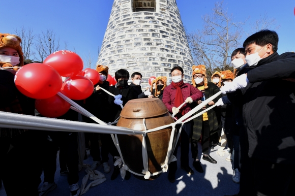 또 지난해 코로나19를 비롯한 묵은 재앙을 물리치고 대구경북과 23개 시군이 서로 상생발전해서 더 크게 발전하는 신년을 기원하는 뜻에서 새해맞이 화합주를 첨성대 옆에 위치한 대형 옹기에 저장했다.