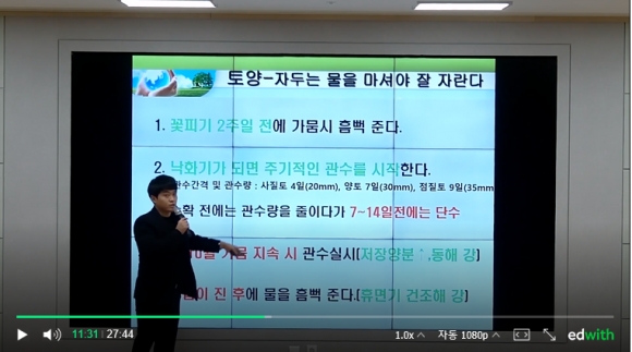 김병수 농업기술센터소장은 “코로나19로 인해 농업인들이 교육 수강에 많은 어려움이 있지만, 다양한 온라인 교육 방법을 활용하여 코로나19 확산 속에서도 농업인들이 방역수칙을 지키며, 올 한 해 영농을 준비하는데 차질이 없도록 지원을 아끼지 않겠다.”고 전했다.