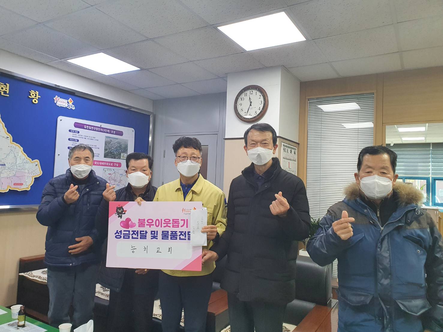 | 어모면 능치교회(목사 박배형)에서 1월 11일 어모면사무를 방문해 불우이웃돕기에 써달라며 성금(100만원)을 전달했다.