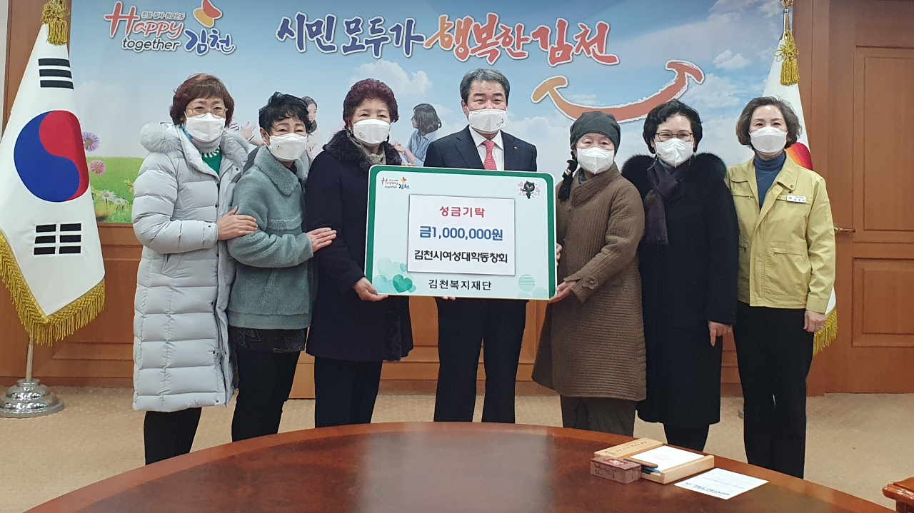 | 김천시여성대학동창회(회장 서지선)는 1월 12일 김천복지재단에 1백만원의 후원금을 기탁했다.