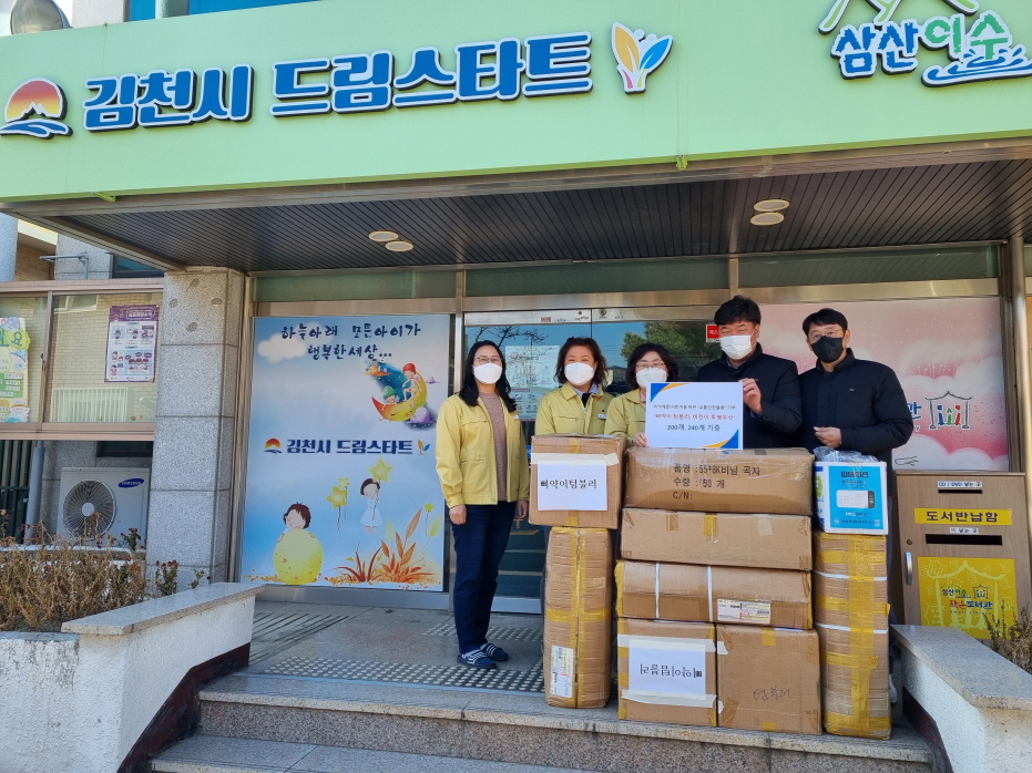| 김천시 드림스타트에서는 지난 11일 한국교통안전공단(교육안전본부)에서 후원받은 입학 준비물 구입을 위한 온누리 상품권(60만원)과 텀블러(200개), 안전우산(200개), 아동 안전용품(야광 열쇠고리 200개)을 지역아동들에게 전달했다.
