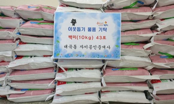 | 지난 12일 대곡동 자이공인중개사(대표 윤준영)에서 임인년 새해를 맞아 관내 복지사각지대에 놓인 저소득계층에게 전달해 달라며 180만원 상당의 백미(10kg) 43포를 대곡동행정복지센터에 기탁했다.