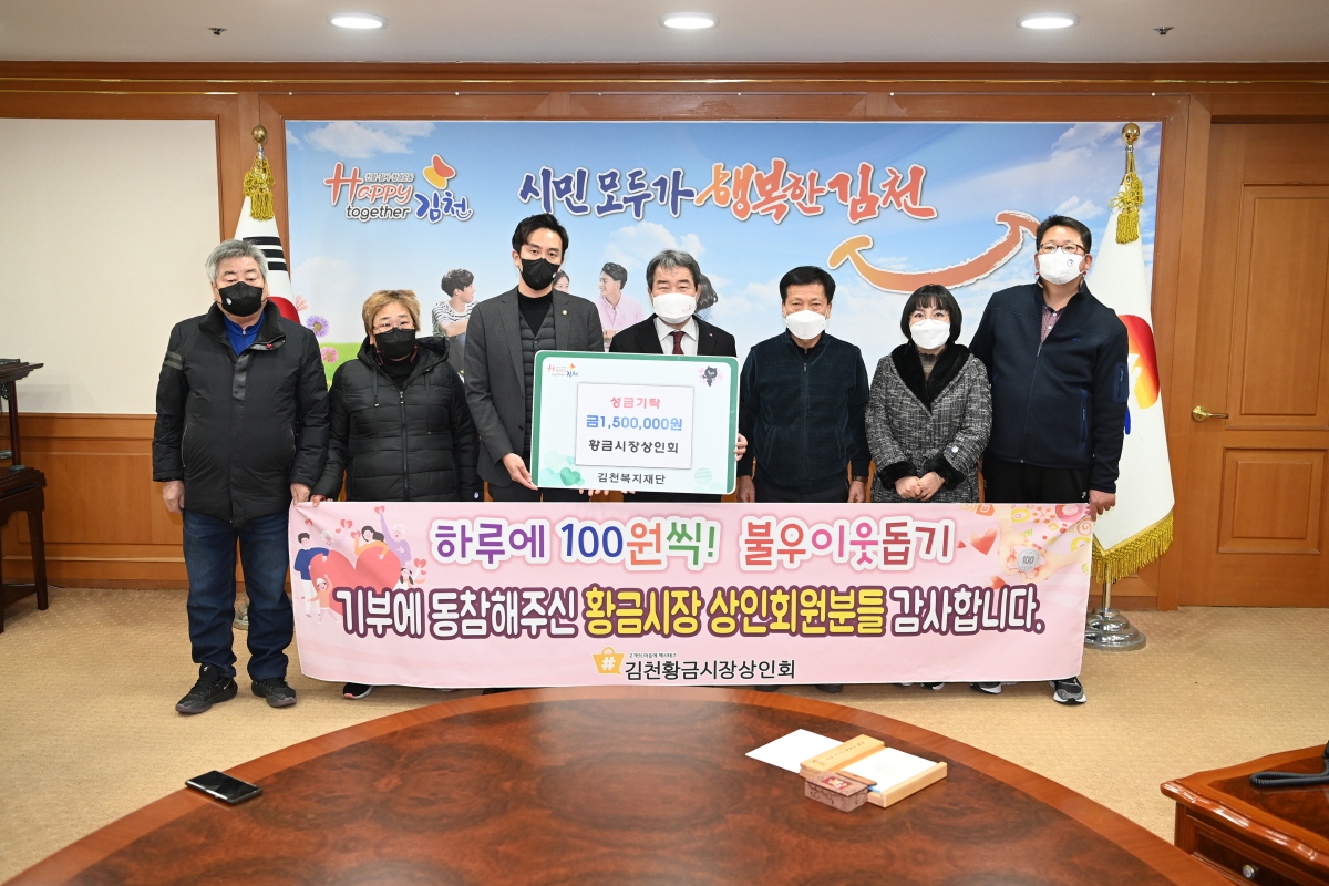 이어 김충섭 시장은 “코로나19로 모두가 어려운 상황임에도 불구하고 어려운 이웃을 위해 후원해주셔서 감사드린다.”며 “기탁해 주신 성금은 황금시장 상인들의 소중하고 따뜻한 마음을 담아 관내 저소득층 및 취약계층 등 복지사각지대에 있는 분들께 소중하게 사용하겠다.”고 전했다.