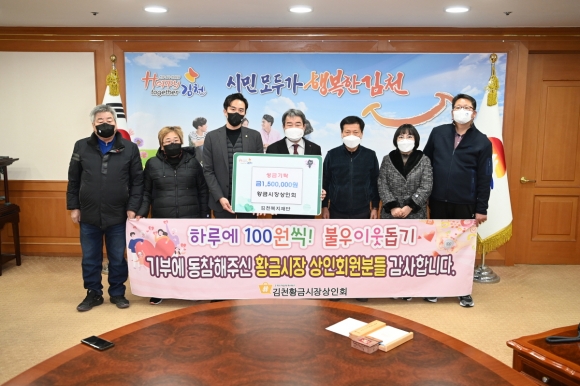 최진영 회장은 “코로나19로 전통시장 상인들이 특히 더 어려움을 겪고 있지만, 지역의 더 어려운 이웃을 위해 황금시장의 많은 상인들이 후원을 해주셨다”며 “앞으로도 우리 황금시장은 시민들과 함께 상생하고 더 많이 나눌 수 있도록 노력하겠다.”고 말했다.