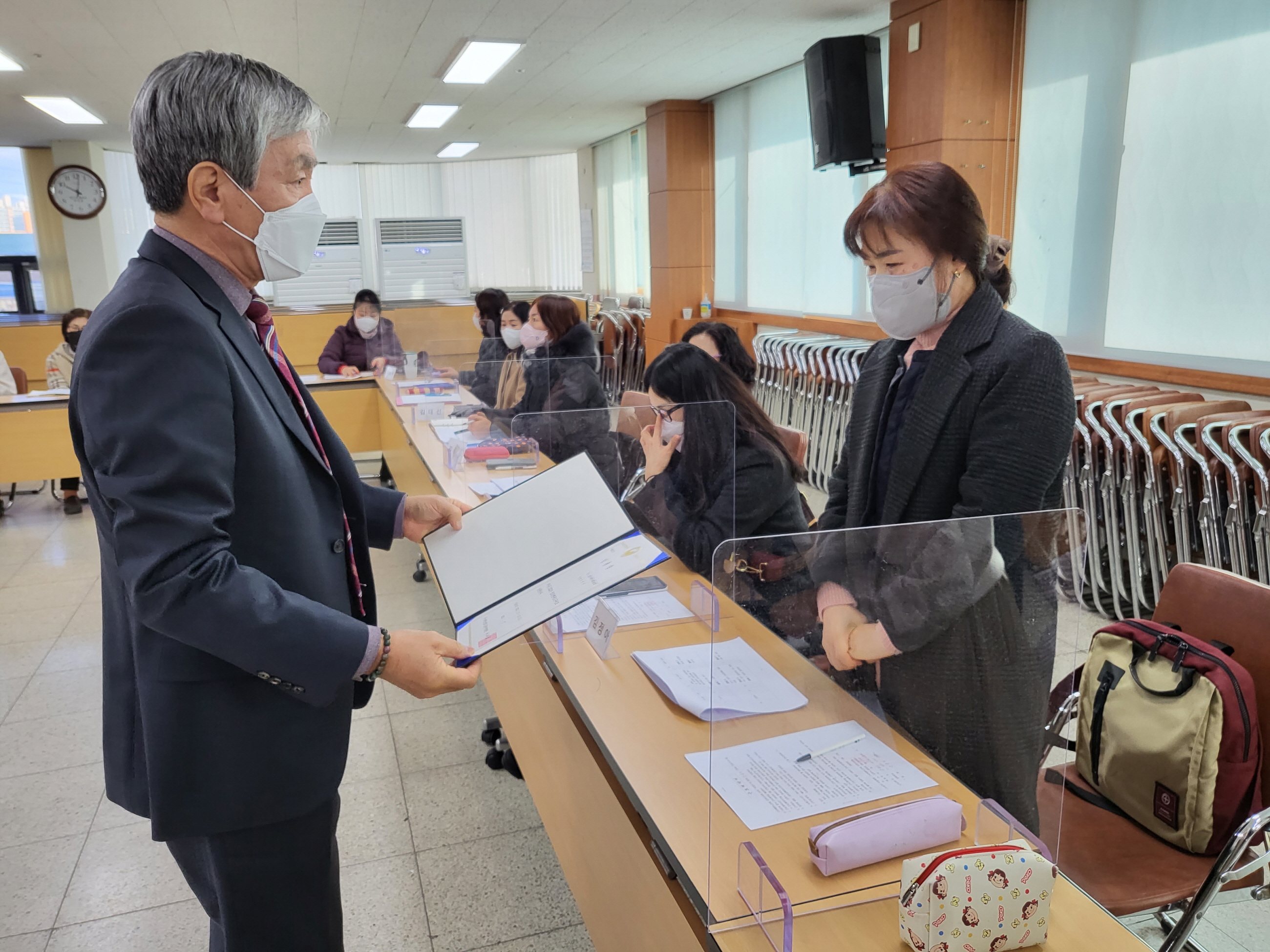이 자리에서 이부화 지회장은 인사말을 통해 코로나19로 인해 어려운 시기지만 모두가 힘을 합쳐 ”노인들의 삶의 질을 향상“시키는데 집중하여 ”지역의 행복한 주인공이 되자“고 하면서 한 가족으로서 무엇보다 서로 화합하고 협력해서 활기넘치는 김천시지회가 되도록 하고, 더불어 항상 건강을 챙기면서 즐겁고, 신나는 직장분위기가 되도록 하자고 하였다.