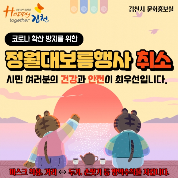 | 김천시는 코로나19 확산 방지를 위해 다음달 15일 예정되었던 정월대보름 행사를 전면 취소한다고 밝혔다.