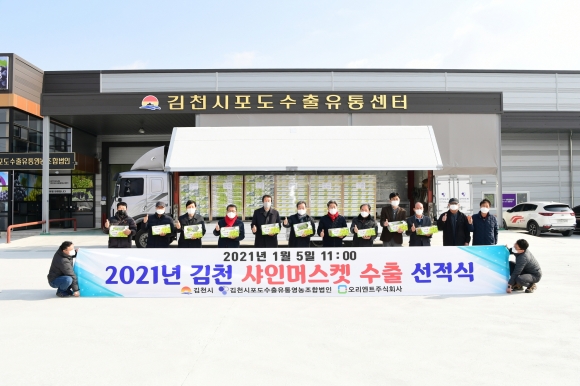 | 김천시는 2021년 12월말 기준으로 농식품 수출 분야에서 수출물량 1천8백 톤, 수출액 1천5백만 달러(한화 약 175억원)의 실적을 기록하여 연초 수립했던 수출목표를 무난히 달성했다고 밝혔다.