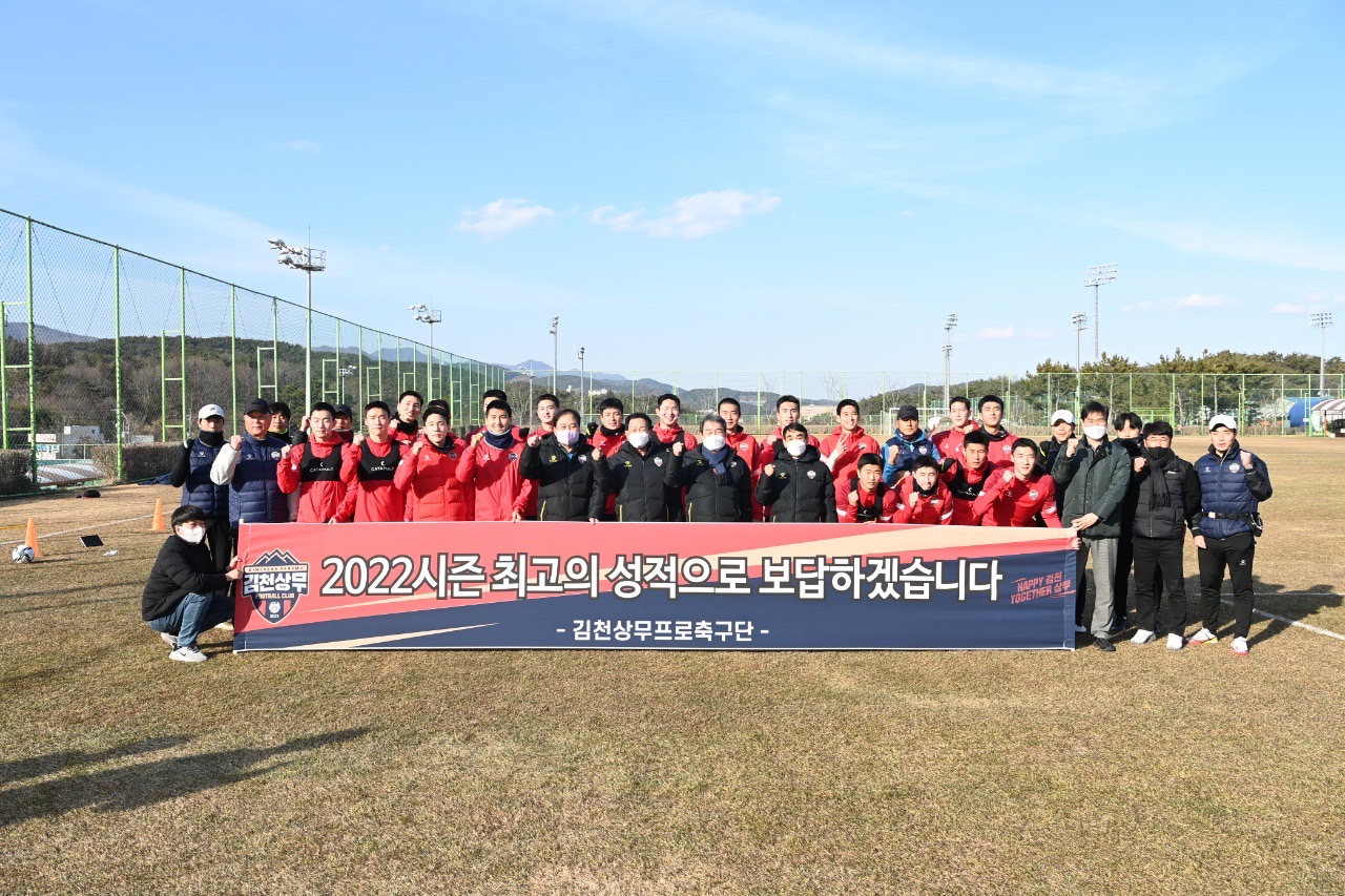 올 시즌 K리그1 화려한 복귀전을 위하여 부산에서 구슬땀을 흘리고 있는 선수단을 격려하고자 김충섭 구단주를 비롯해 배낙호 대표이사, 최한동 후원회장, 이흥실 단장, 서정희 김천시체육회장 등이 함께 방문했다.