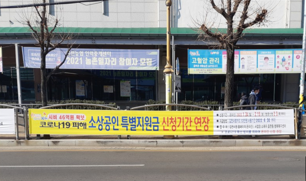 | 김천시는 소상공인 특별지원금(1인당 50만원) 지급 신청기간을 2. 15.(화)까지 연장한다고 밝혔다.