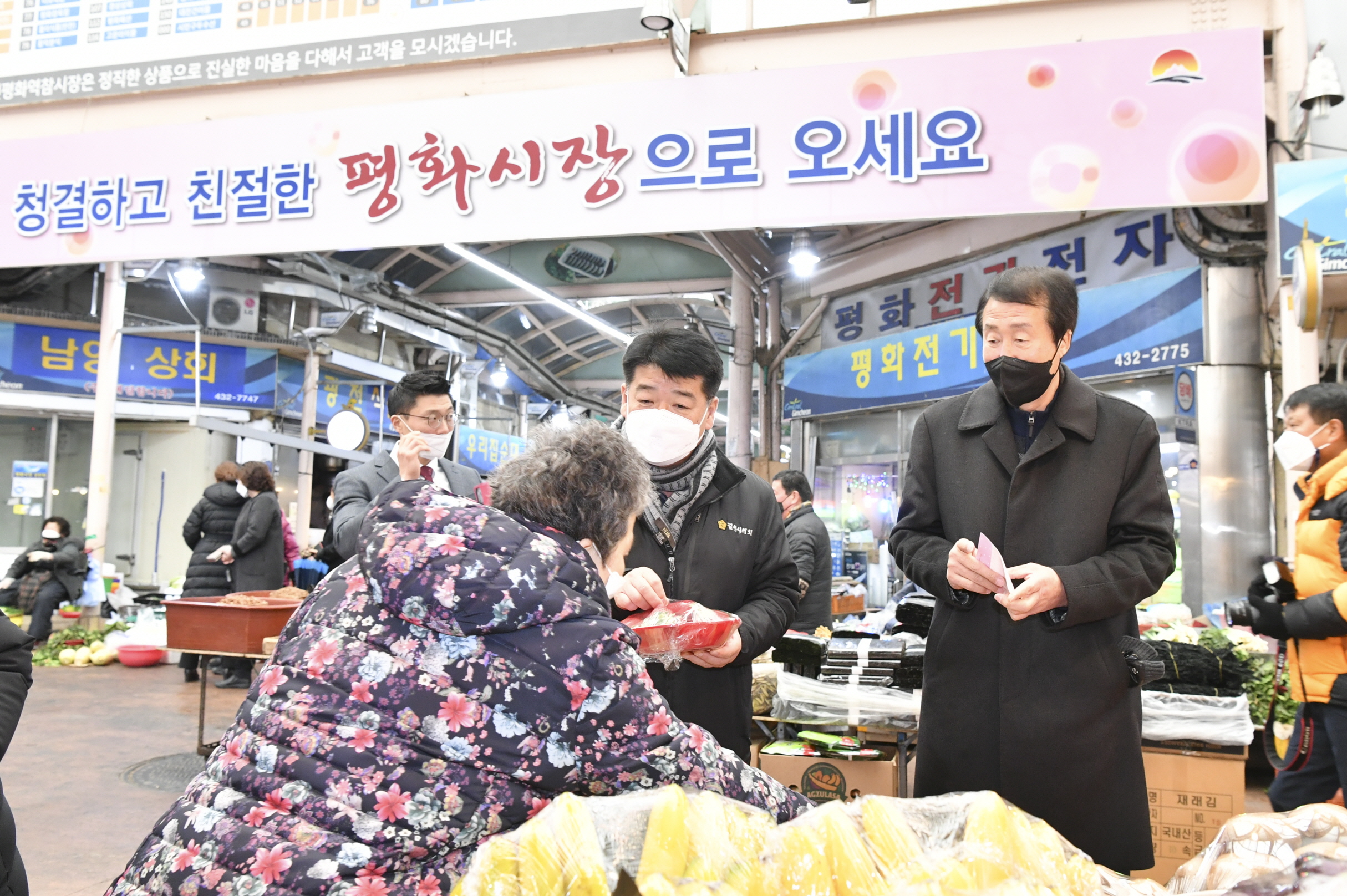 이날 평화시장에서는 미리 구입한 김천사랑 상품권으로 설 제수용품을 구입하면서 장기화된 코로나19로 어려움을 겪고 있는 시장 상인들을 격려하고 전통시장 활성화에 지속적인 관심을 갖고 지원할 것을 약속했다.