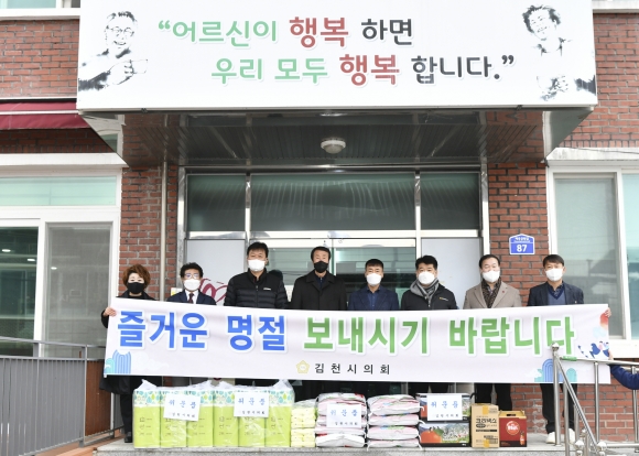 | 김천시의회(의장 이우청)는 지난 25일 민족 고유의 명절인 설날을 앞두고 이우청 의장을 비롯한 의원들과 의회사무국 직원들이 평화시장에서 전통시장 장보기 행사를 진행한 후 사회복지 시설을 방문하고 위문하였다.