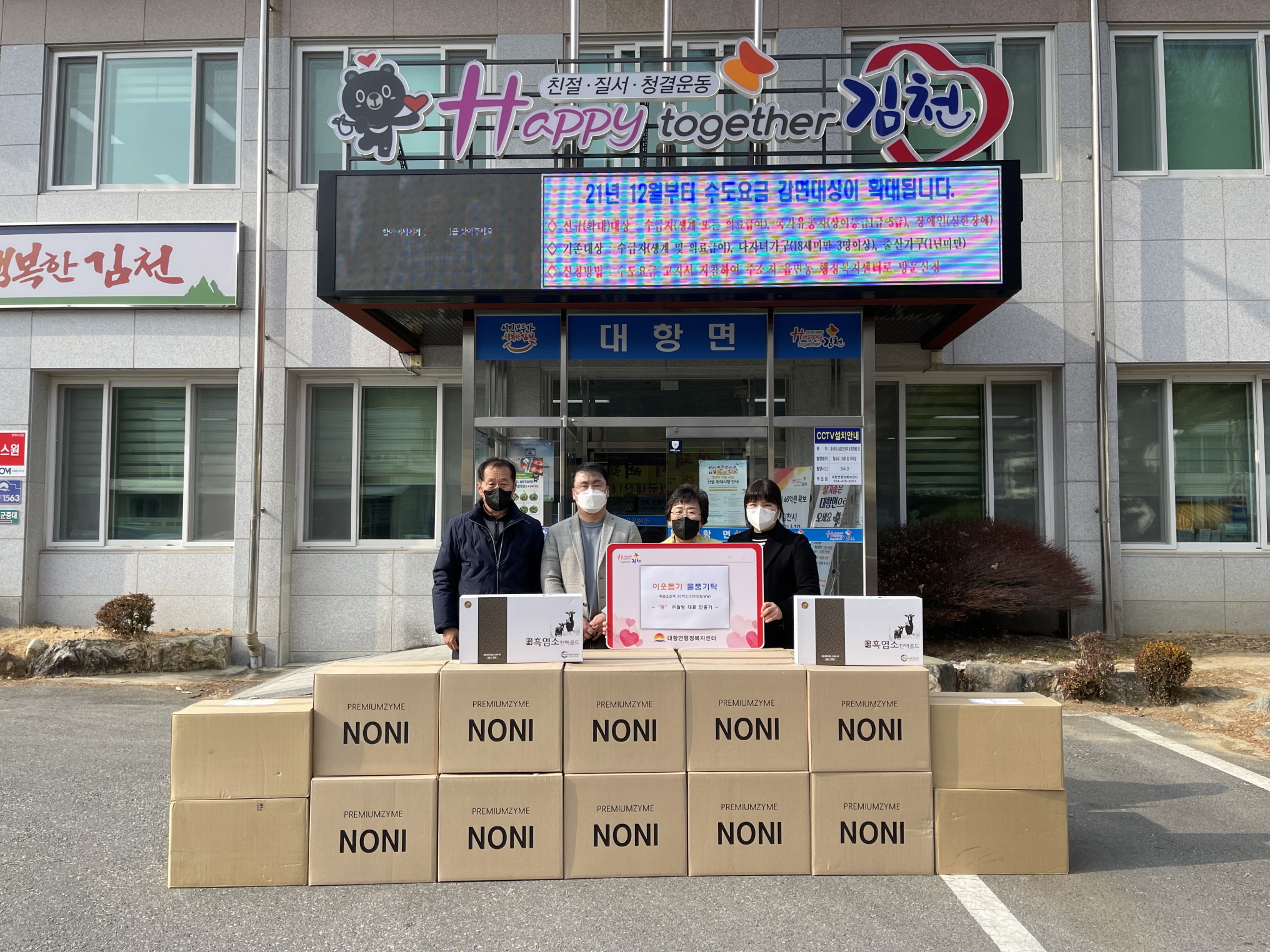 | ㈜웰빙(대표 민홍기)은 26일(수) 대항면행정복지센터(면장 최정숙)를 방문하여 어려운 이웃에게 전달을 부탁하며 흑염소진액 등 85박스(시중가 300만원 상당)을 기탁했다.