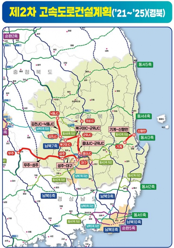 | 경상북도는 28일 국토교통부가‘제2차 고속도로건설 5개년 계획(2021~2025)’을 확정해 발표했다고 밝혔다.