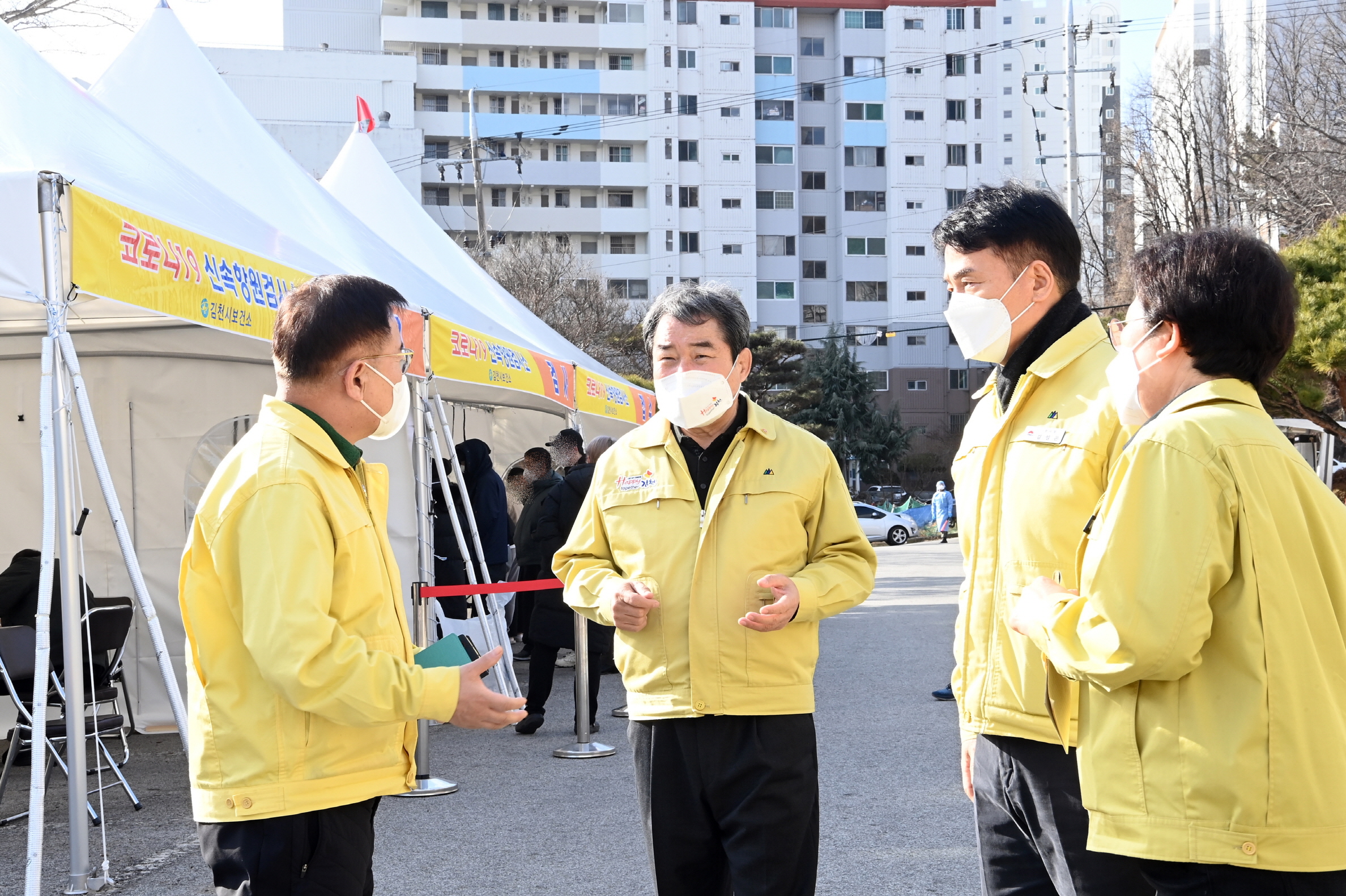 김충섭 김천시장은“현재 우리 시의 신규 확진자가 급증함에 따라 매우 엄중한 상황임을 인식하고, 타지역을 방문하였거나 코로나 의심 증상이 있는 시민은 선별진료소에서 검사를 받아 줄 것과 백신 미접종자 및 추가 접종 대상자인 경우 반드시 접종을 당부드린다”고 하였다.