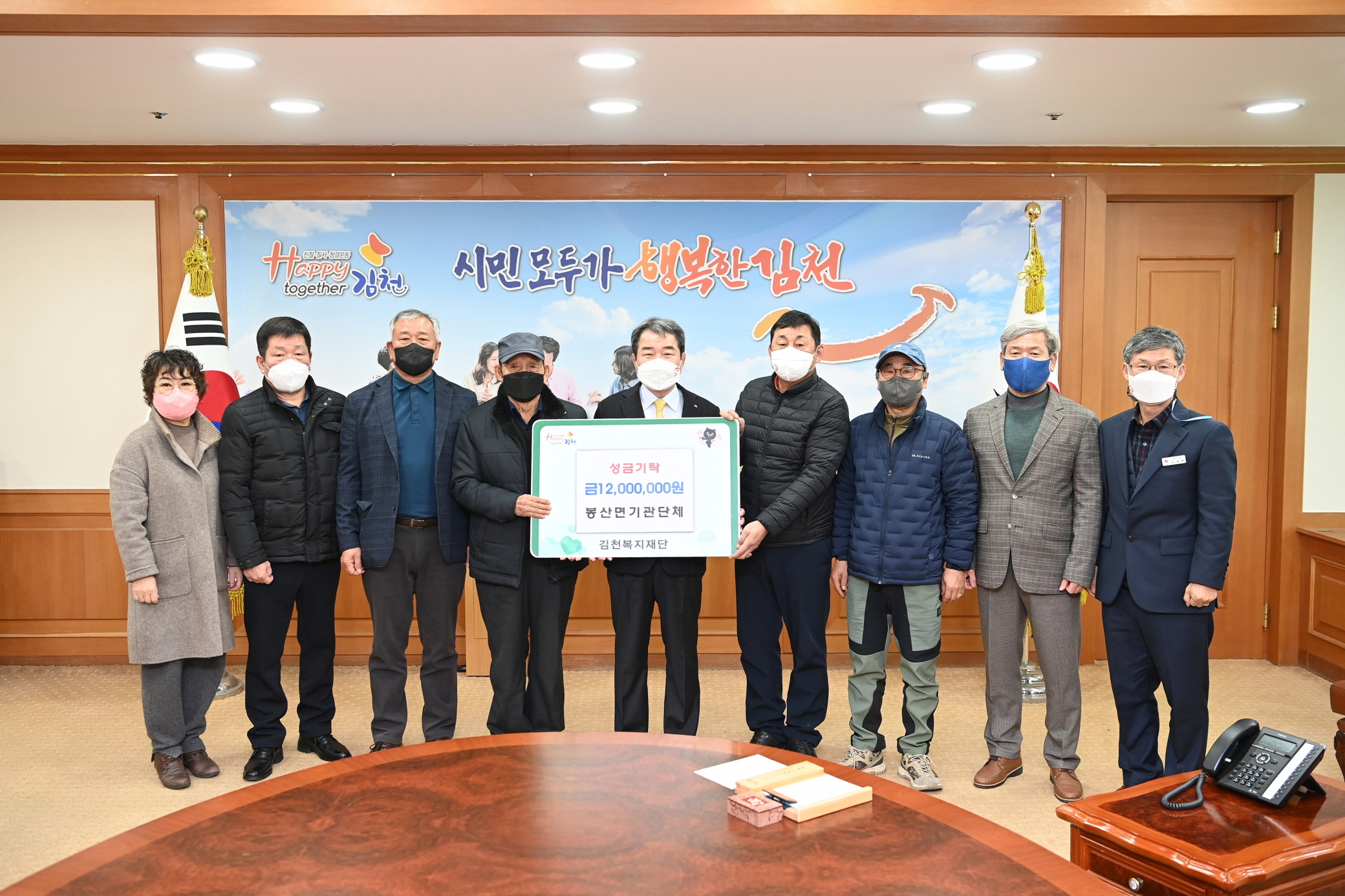 | 봉산면 17개 기관․단체 일동은 지난 14일 김천시청을 방문해 김천복지재단에 성금을 전달했다.