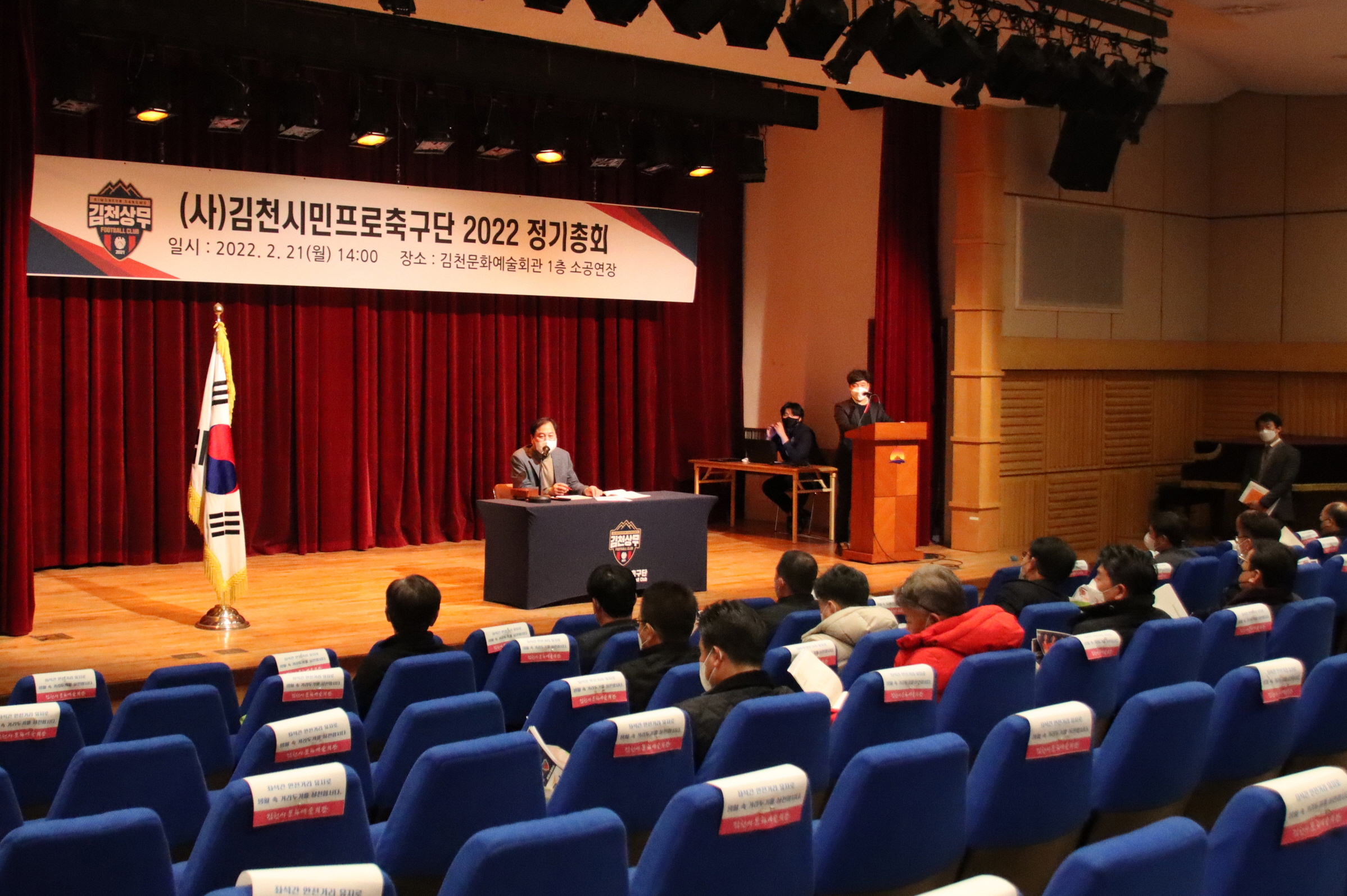 김천상무프로축구단이 21일 오후 2시, 김천문화예술회관 소공연장에서 ‘김천시민프로축구단 2022년 제1차 정기총회’를 개최했다. 정기총회에는 김천상무 김충섭 구단주, 배낙호 대표이사, 최한동 후원회장을 비롯해 대의원 20명이 참석했다.