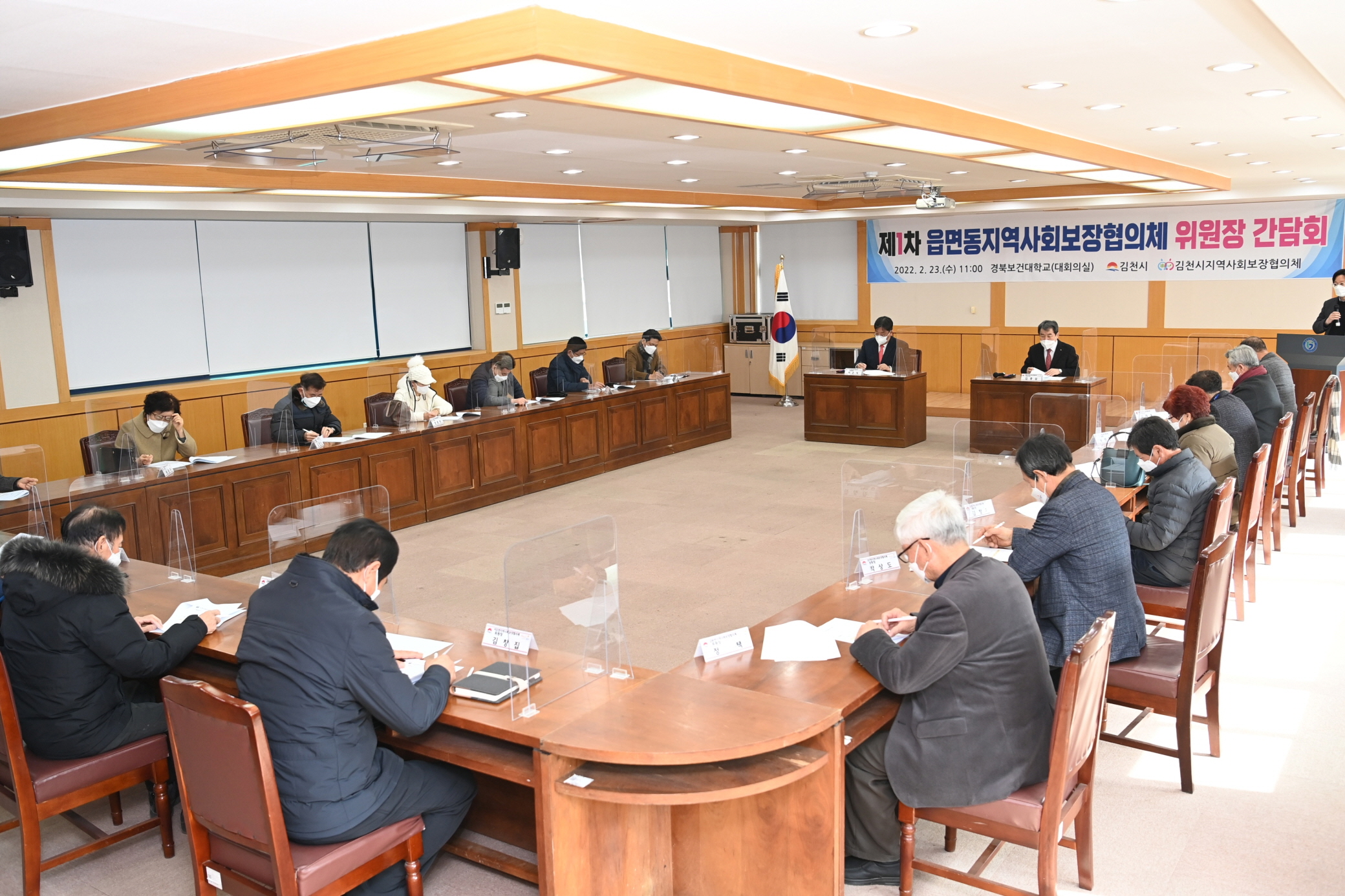 | 김천시지역사회보장협의체(위원장 김충섭, 공동위원장 이은직)는 지난 23일 경북보건대학교 대회의실에서 2022년도 제1차 읍면동 지역사회보장협의체 위원장 간담회를 개최했다.