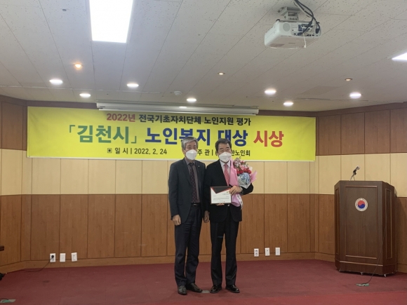 작년 대한노인회 김천시지회가 2021년 노인의 날·경로의 달 정부 포상에서 노인복지 발전에 기여한 유공단체로 보건복지부 장관상을 수상한데 이어 이러한 모든 노력이 결실이 되어 김천시도 대한노인회 노인복지대상 첫 회에 수상을 하여 더욱더 의미가 깊다.