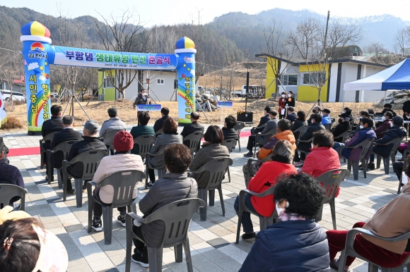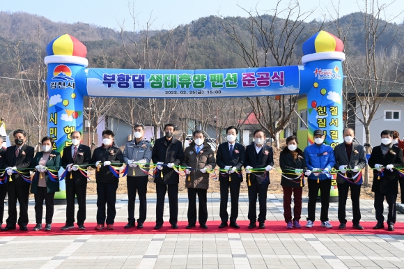 | 김천시는 25일 부항댐 생태휴양펜션 주차장에서 김충섭 김천시장, 이우청 시의회 의장, 시의원 및 기관단체장, 지역주민이 참석한 가운데‘부항댐 생태휴양펜션 준공식’행사를 가졌다.