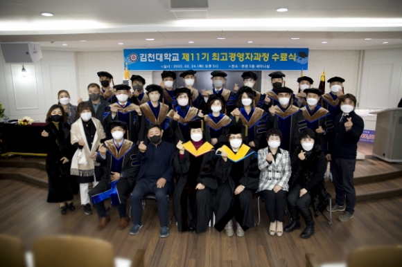 |  | | | ⓒ 김천내일신문 | | 김천대학교(총장 윤옥현) 최고경영자과정 제11기 수료식이 지난2월24일 김천대학교 본관 세미나실에서 개최되었다.