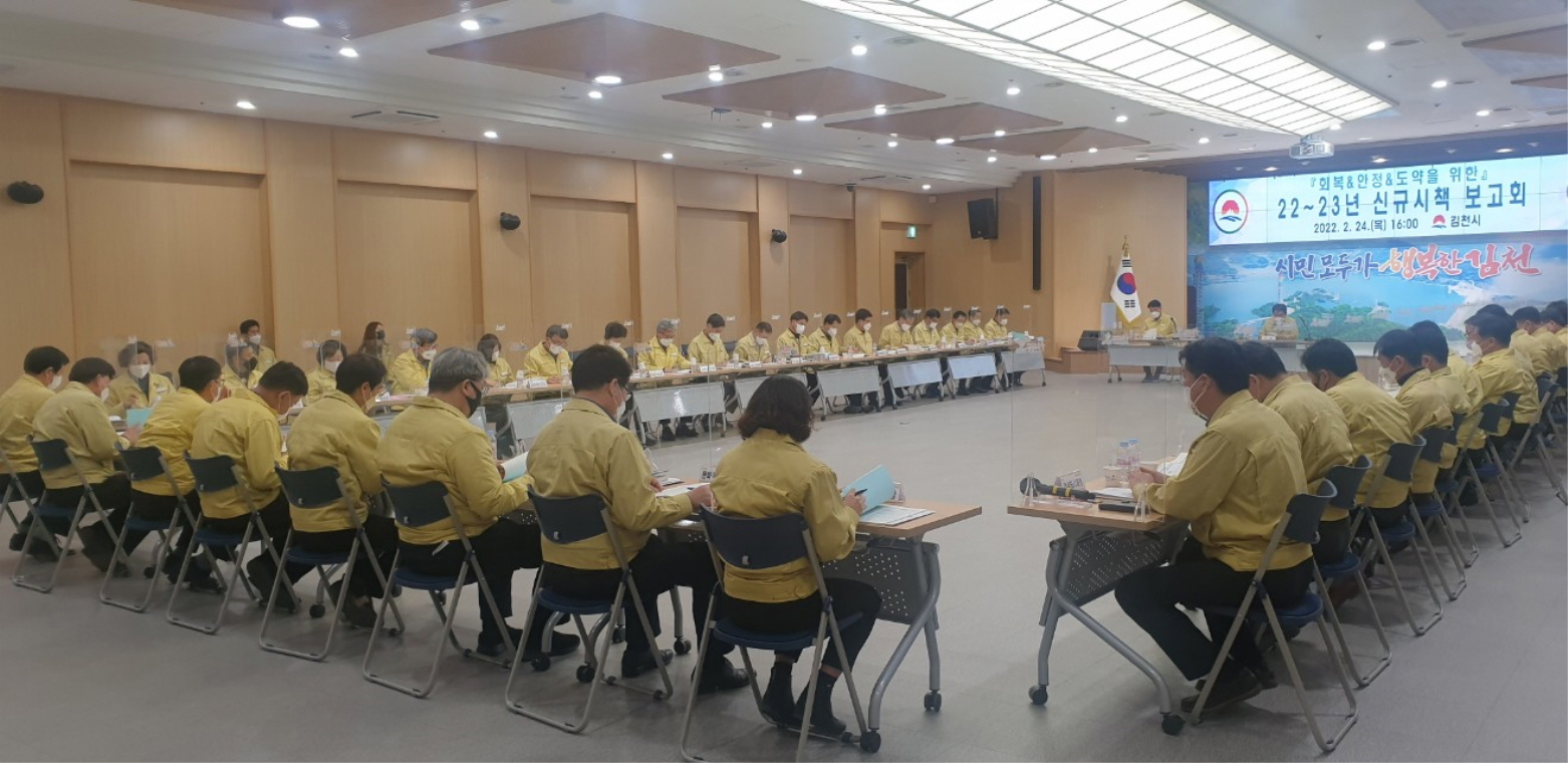 | 김천시(시장 김충섭)는 지난 24일 시청 강당에서 김충섭 시장 주재로 국·소장, 실·과·소장이 참석한 가운데 ‘22 ~‘23년 신규시책 보고회를 개최했다.