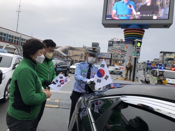 새마을교통봉사대 김천시지대, 103주년 삼일절 차량용 태극기 달기 캠페인