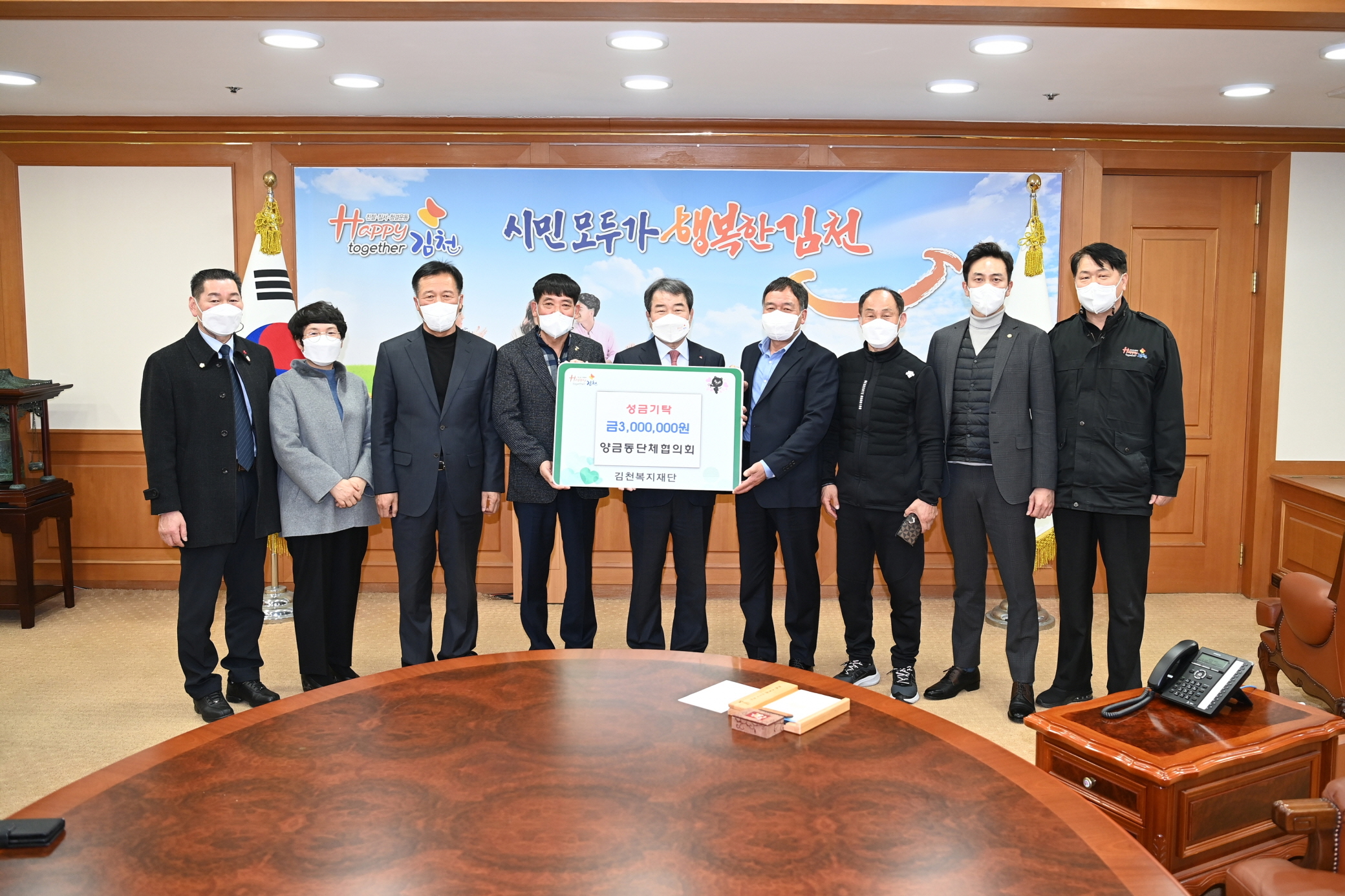 정호동 단체협의회 회장은 “코로나19의 장기화로 힘든 시간을 보내고 있는 이웃들에게 보탬이 되길 바라며, 김천복지재단에 작지만 소중한 기부를 할 수 있게 되어 매우 기쁘다.”고 말했다.