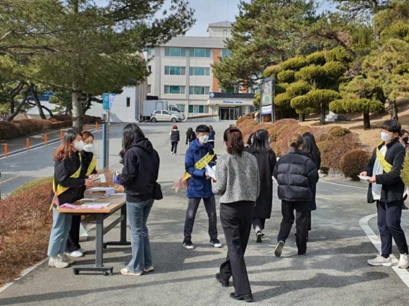 | 김천시 대신동(동장 전제등)은 2월 28일 경북보건대학교를 방문해 입학식에 참석한 신입생을 대상으로 김천 주소갖기 운동을 전개했다.