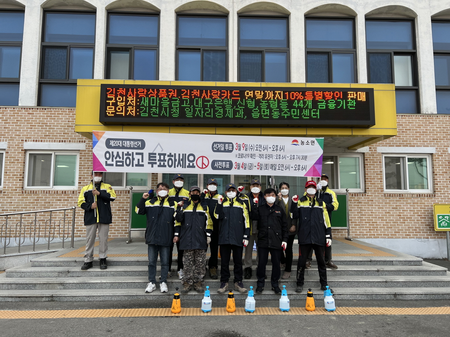 | 김천시 농소면(면장 강전원)은 사전 투표율 제고를 위해서 다각적인 방법으로 투표 참여 홍보에 나섰다. 원룸촌 및 농소면 13개 마을에 제20대 대통령 선거 홍보 포스터를 붙여서 주민들이 투표에 자발적으로 참여할 수 있도록 독려를 했다.