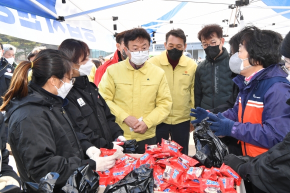 이철우 경북도지사는 6일 오후 자원봉사자들을 찾아“휴일도 잊고 피해 주민과 지역을 위해 한 걸음에 달려와 따뜻한 손길을 보태줘 정말 감사하다”며, “도지사로서 모든 자원을 동원해 산불진화에 나서고 있다. 최대한 빨리 마무리 되도록 최선을 다하겠다. 끝까지 피해 주민들을 위해 사랑을 실천해 달라”고 당부와 각오를 밝혔다.