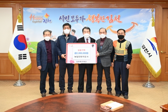 | 김천시 품목별 농업인턴지도사 4명은 지난 14일 김천시청을 방문해 코로나로 힘겹게 생활하는 소외계층에 전달해 달라며 복지재단 이웃돕기 성금 200만원을 전달했다.