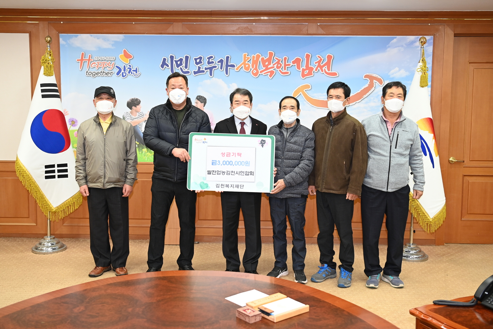 쌀전업농김천시연합회 김천복지재단에 성금 300만원 전달