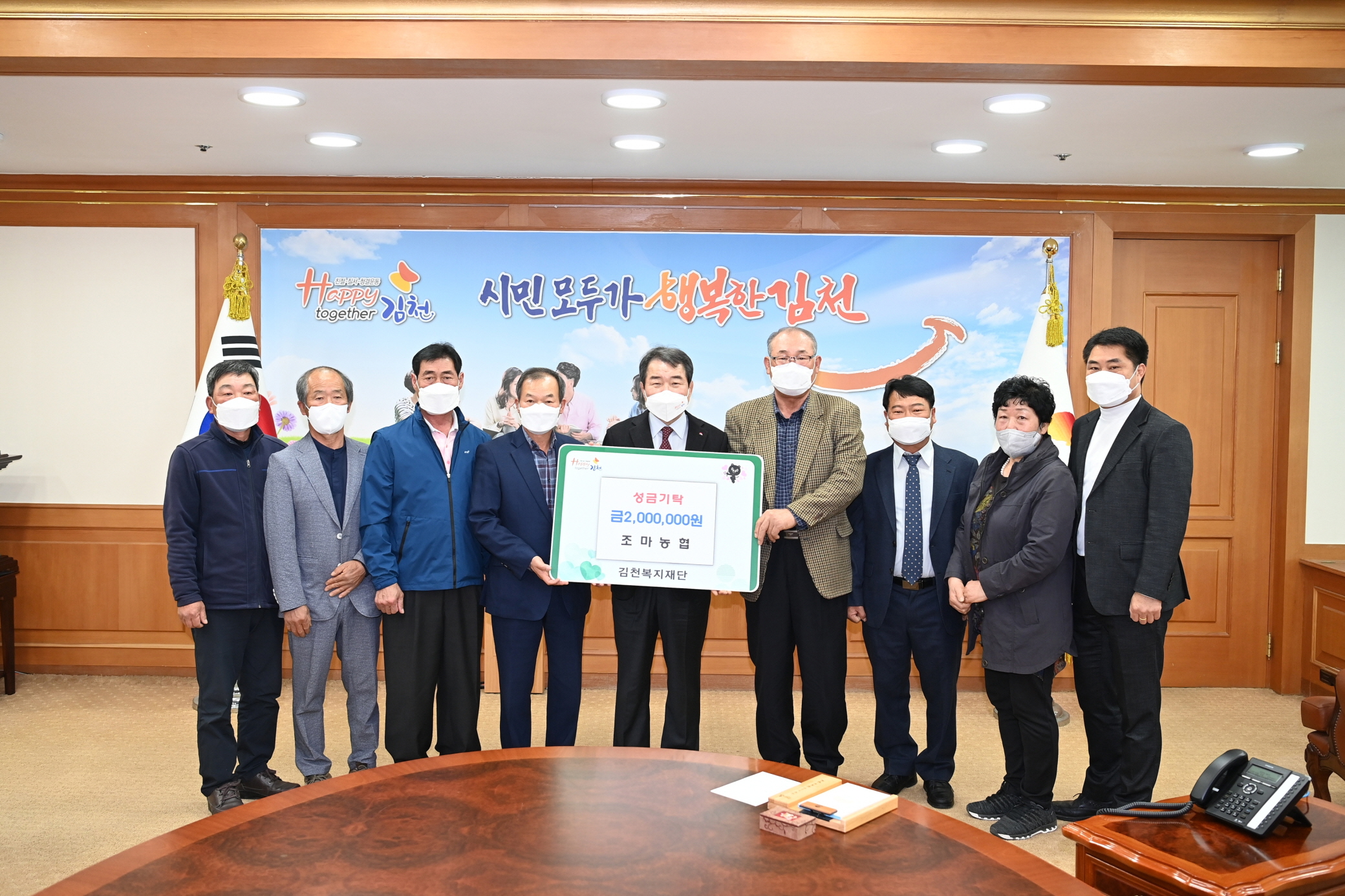 이날 성금 전달식에 참석한 최한섭 조합장을 비롯한 조마농협 이사, 감사, 전무 등 8명은 “코로나 19의 장기화로 도움이 절실한 복지취약계층에게 조금이나마 보탬이 되길 바라며, 적은 금액이지만 희망을 전할 수 있어서 기쁘다.”고 말했다.