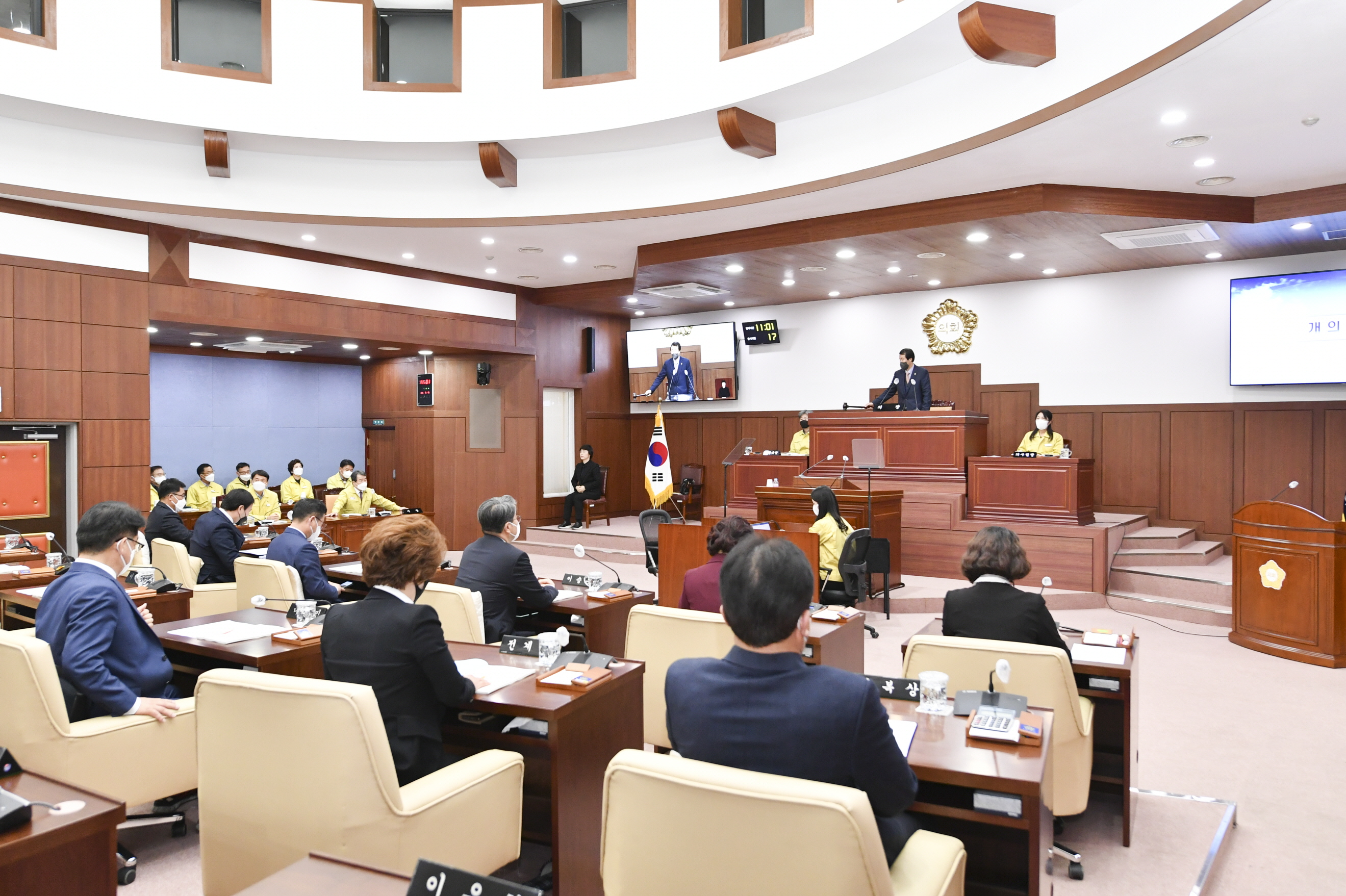 이번 임시회에서는 백성철 의원을 대표위원으로 하는 2021회계연도 결산검사 위원 10명을 선임하였으며, 마지막 날인 16일에는 조례안 등 총 16건의 의안을 심의·의결했다.
