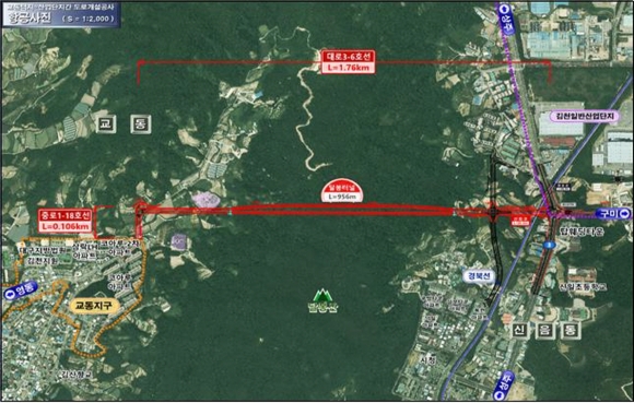 “김천대학교 ~ 봉산면사무소 연결도로”는 현재 2차로 도로를 4차로로 확장하여 교통흐름 개선과 안전한 보행환경을 조성하는 사업이며, 달봉산 터널 사업은 삼락·문당동과 신음동 주거지를 연결하는 도로로 대단지 아파트 주민 뿐 아니라 법원 등 관공서를 찾는 민원인의 사업건의가 지속적으로 건의된 대표적인 숙원사업이다.