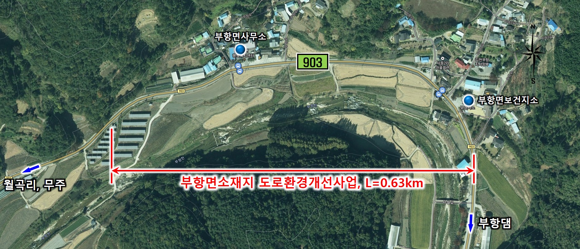 - 조마면 신안리, 부항면사무소 앞 좁고 위험한 지방도 환경개선 - 2023년 완공 목표, 총사업비 24억원