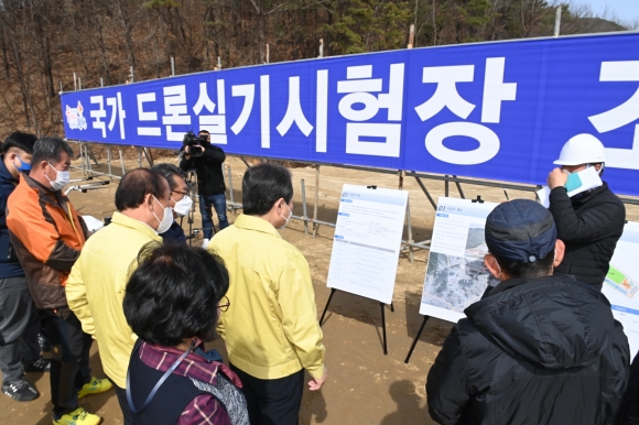 1. 지역거점 드론 실기시험장 구축 4차 산업혁명 시대의 주요 테마 중 하나는 드론이다. 드론 조종자격 취득자는 2018년도 15,678명, 2019년도 30,402명, 20년 6월 기준 35,489명으로 지속적 증가 중이며 관련 시장도 최근 급격한 성장을 이루고 있지만, 이를 뒷받침해줄 만한 제도적 지원이 아직 부족한 실정이다. 현재 전국 10개소 드론 실기시험장이 있으나 모두 가시권 비행 자격 검증만 가능하고 비가시권 자격을 다루는 시설은 전무한 실정이다. 그러나 김천시에서는 전국 최초로 비가시권 비행 시험장을 유치하여 단순 비행에서 벗어나 비가시권 장거리 계기비행을 위한 제도적 마련을 위해 힘쓰고 있다. 김천 ‘지역거점 드론 실기시험장’에서는 국내 최초로 비가시권 및 장거리 비행이 가능한 드론 자격체계를 연구, 개발함과 동시에 관련 실기시험 응시가 가능할 예정이다. 총사업비 365억(국비 187억, 지방비 178억)을 투입하여 김천시 개령면 덕촌리 일원에 약 65,000㎡ 규모로 활주로와 드론 시험장, 운영센터, 통제센터 등을 구축한다. 덕촌리 부지에는 드론 실기시험을 위한 실기시험장(90m×40m) 4개, 고정익 드론의 이착륙을 위한 비행활주로(200m×20m) 1개 그리고 헬리패드와 관제시설, 정비동, 운영센터 등이 구축된다. 작년(2021년) 말 토목 공사에 착수했으며, 2023년도 완공 예정이다. 해당 시험장이 완공되면 연간 약 13,000명 규모의 자격시험자 및 교육 인원 발생에 따른 지역경제 활성화 효과가 기대된다. 또한, 드론 조종에 대한 수요가 지속적으로 증가하여 이후 자격증 취득을 위한 김천시 방문객은 더욱 증가할 것으로 예상된다.