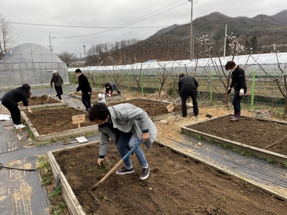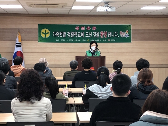 | 김천시새마을회(회장 임영식)는 3월 26일 황악예술체험촌(김천시 봉산면 소재)에서 새마을공동체정원사업 ‘가족텃밭 정원학교’를 개강했다. 정원학교 참가자는 3월 18일부터 선착순(30가구) 모집했으며, 안전한 먹거리와 가족친화 체험활동 등에 대한 관심이 높아 신청 이틀만에 모집이 완료 됐다. 이날 개강식에서는 특색 있는 텃밭 이름 지어 팻말 만들기, 텃밭 추첨, 비료 뿌리기, 씨앗심기 등 텃밭 운영의 첫 단계를 시작했다. 새마을공동체정원학교는 2015년 행정안전부 공모사업에 선정, 기반시설을 조성한 후, 2016년부터 매년 30가구를 모집해 가구당 약6.6㎡(두평)텃밭을 분양하고 있다. 생명살림운동강사 과정을 수료한 새마을지도자가 초보자들도 쉽게 따라할 수 있도록 씨앗 심는 법부터 관리 방법까지 알려주고, 천연염색, 요리교실, 친환경 소품 만들기 등 다양한 체험프로그램도 병행할 계획이다.