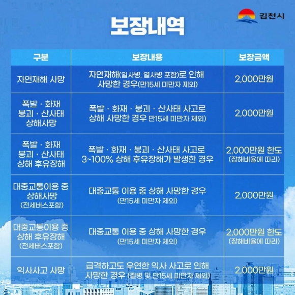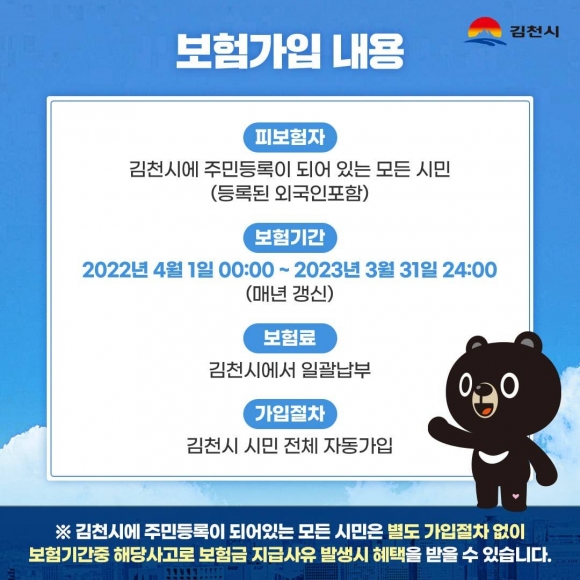 김천시 모든 시민을 위한 ‘시민안전보험’지속시행