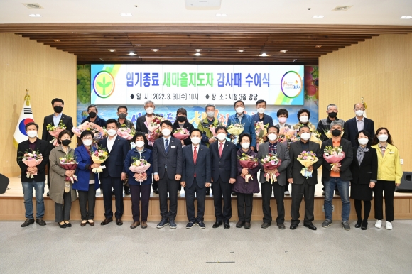 | 김천시(시장 김충섭)는 3월 30일 10시 시청 3층 강당에서 지역사회 발전과 새마을운동 활성화를 위해 헌신·봉사하고, 임기를 마친 새마을지도자에게 감사패를 전달했다. 김충섭 시장, 임영식 김천시새마을회장, 임상훈 지도자협의회장, 이도희 새마을문고회장, 박판수 도의원, 수상자 등 30여명이 참석했다.