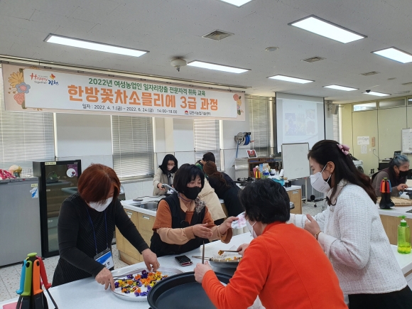 ‘농촌여성 일자리창출 교육’은 각 과정 20명의 농촌여성을 대상으로 운영하는 과정으로, 상반기에 「한방꽃차 소믈리에 3급」, 하반기에는 「노인여가활용지도사 1급」과정이 실시될 예정이다.
