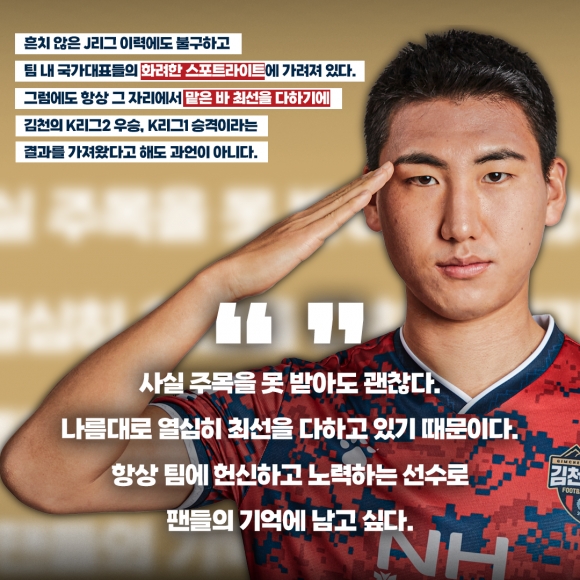 [천성히어로] 김천상무 유인수 “주목? 못 받아도 괜찮아!”