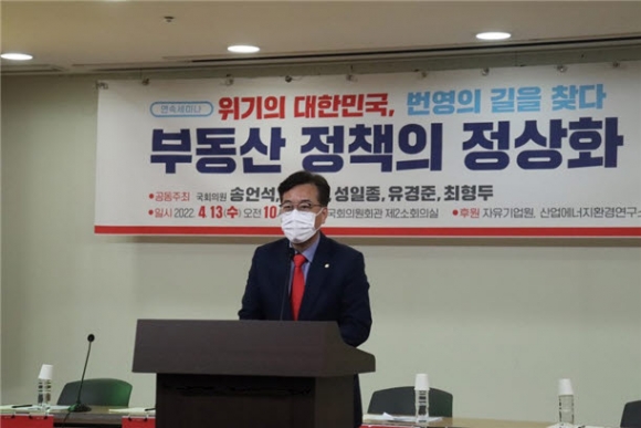 | 송언석 의원(국민의힘, 경북 김천)이 4월 13일 국회의원회관 제2소회의실에서 유경준 의원(국민의힘, 서울 강남구병)과 공동으로 주최한 「위기의 대한민국, 번영의 길을 찾다」 연속세미나의 제3차 「부동산 정책의 정상화」 세미나를 성황리에 마쳤다고 밝혔다.