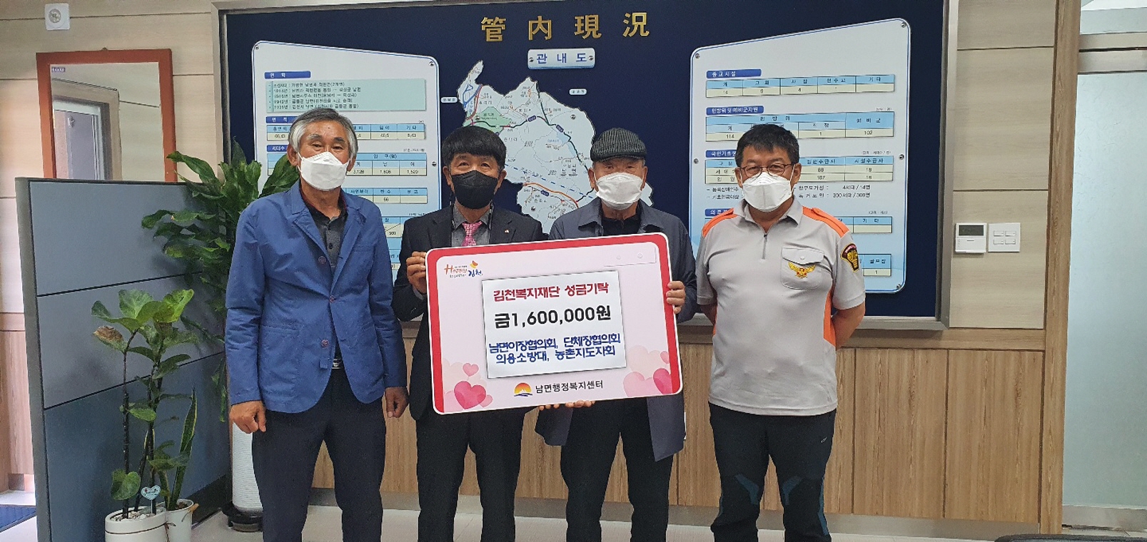 남면 이장협의회, 단체장협의회, 농촌지도자회, 의용소방대에서 십시일반 김천복지재단에 성금기탁