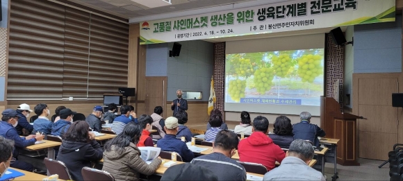 | 김천시 봉산면(면장 김철환)은 4월 18일, 봉산면 봉황관에서 교육생 50명이 참석한 가운데 「Happy Together 김천운동」을 실천하기 위한 「고품질 샤인머스켓 생산을 위한 생육단계별 전문교육」을 개강했다.