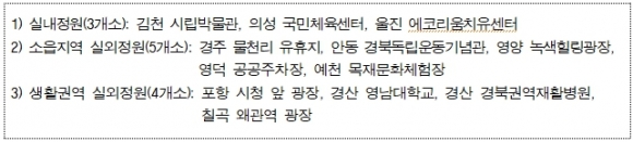 경상북도는 정부의 한국판 뉴딜 추진에 발맞춰 경북형 그린뉴딜의 일환으로 올해 총 65억원을 투입해 지역 적소에 생활밀착형 정원 12개소*를 조성할 계획이다.
