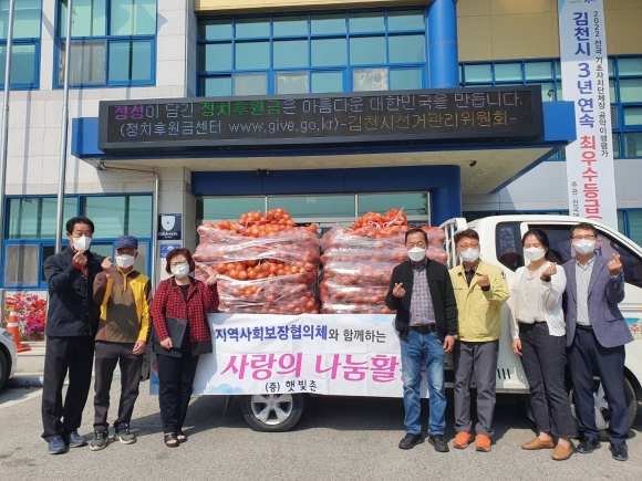 | 지역의 복지증진에 앞장서고 있는 어모면 지역사회보장협의체(위원장 김창집)에서 지역의 어려운 이웃을 위해 지난 4월 19일 관내 농업회사법인 햇빛촌(대표 김재덕, 58세)에서 기증한 양파 100망에 대해 관내 어려운 이웃에게 배부했다.
