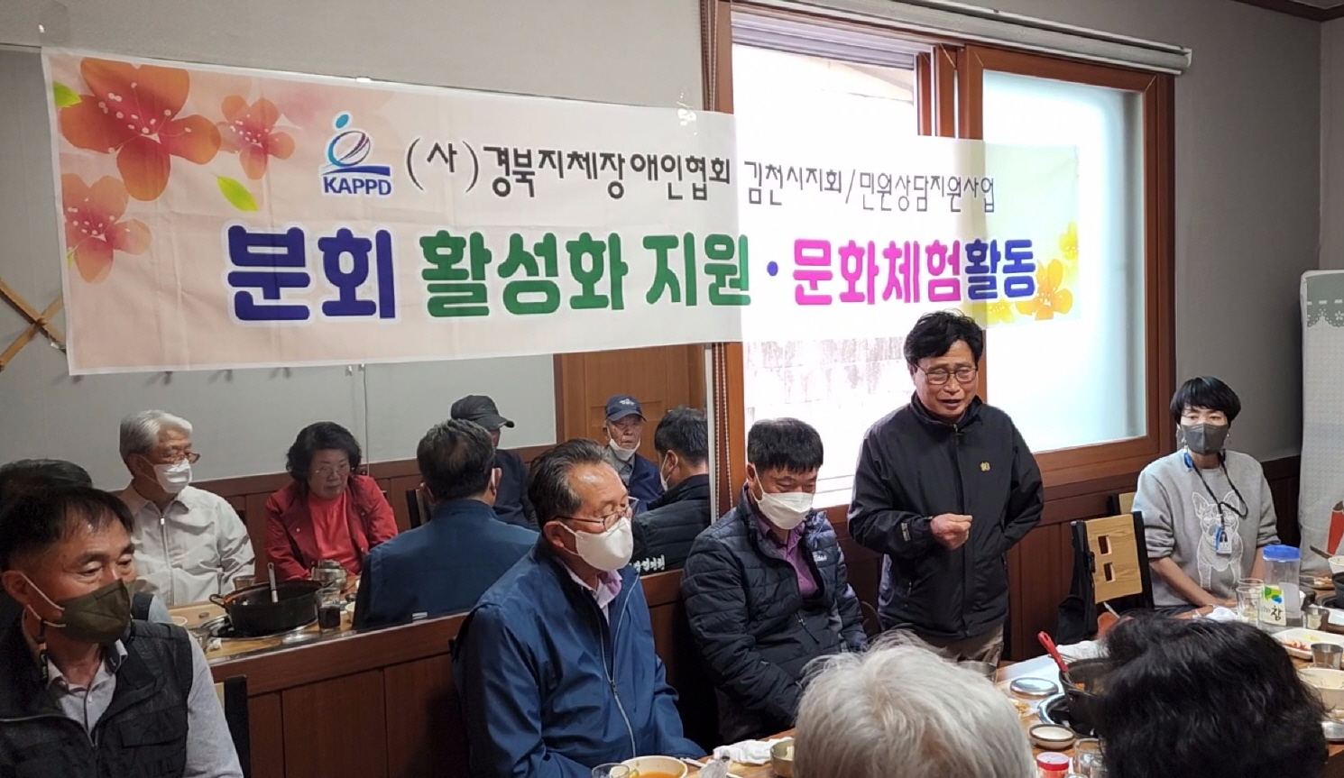 | (사)경북지체장애인협회 김천시지회(지회장 박희만)는 4월 21일 대덕면 회원들을 대상으로 증산면 소재 국립김천치유의 숲에서 분회활성화 지원사업을 실시하였다.